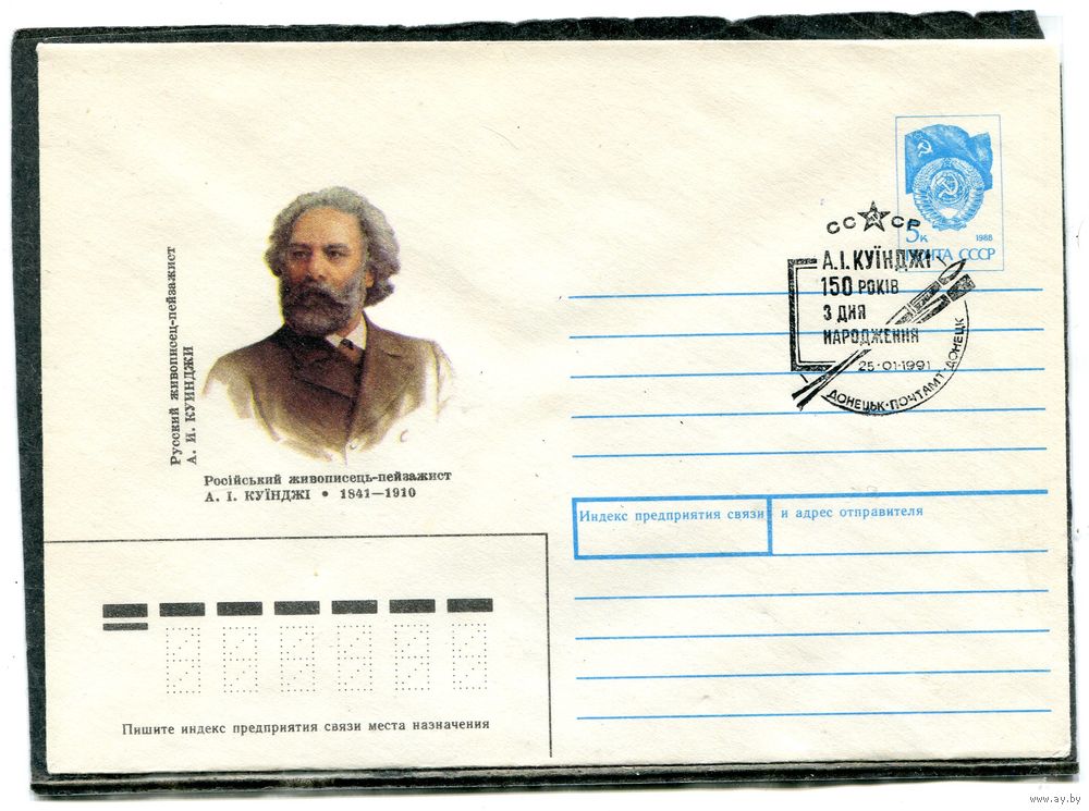 СССР 1990. ХМК. Конверт с СГ. А.И. Куинджи, живописец пейзажист. Гашение Донецк 1991