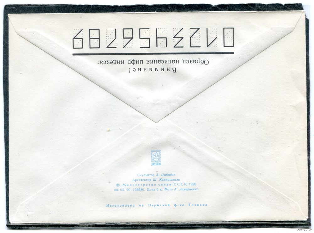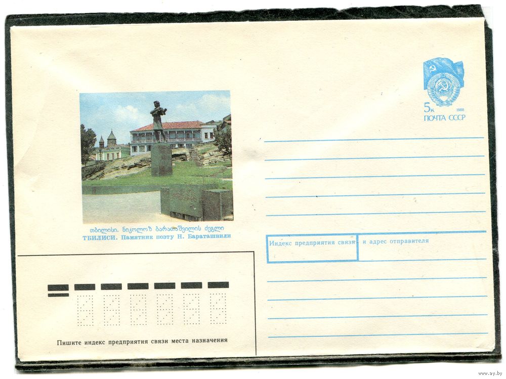 СССР 1990. ХМК. Конверт. Тбилиси. Памятник поэту Н. Бараташвили