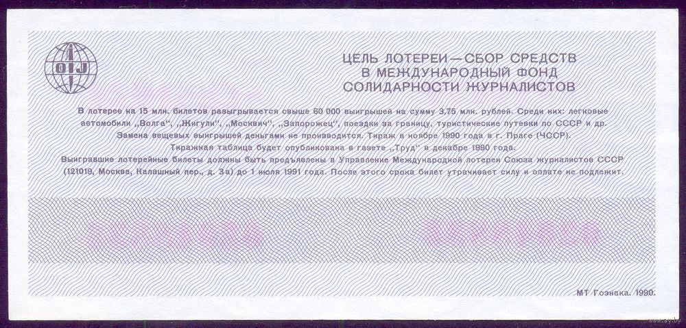 СССР 1990 Международная Лотерея солидарности журналистов 833