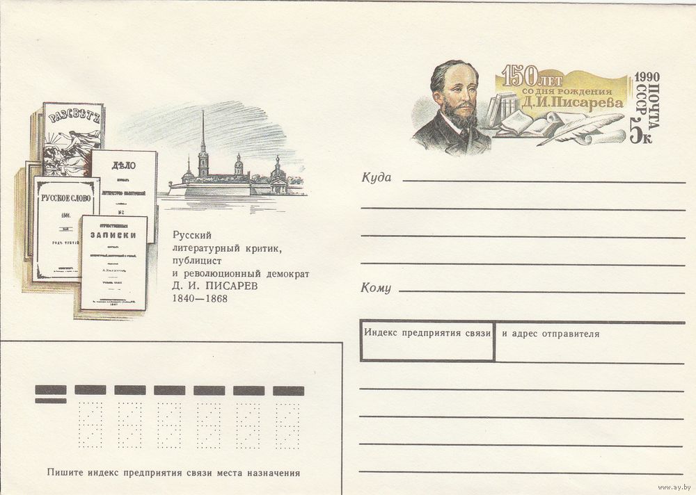 СССР 1990 МХК с ОМ 150 лет со дня рождения Д.И. Писарева (к3)