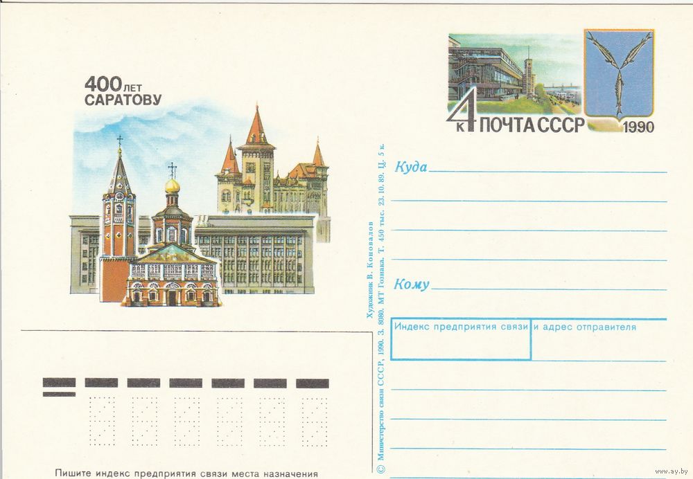 СССР 1990 ПК с ОМ 400-летие Саратова (к3)