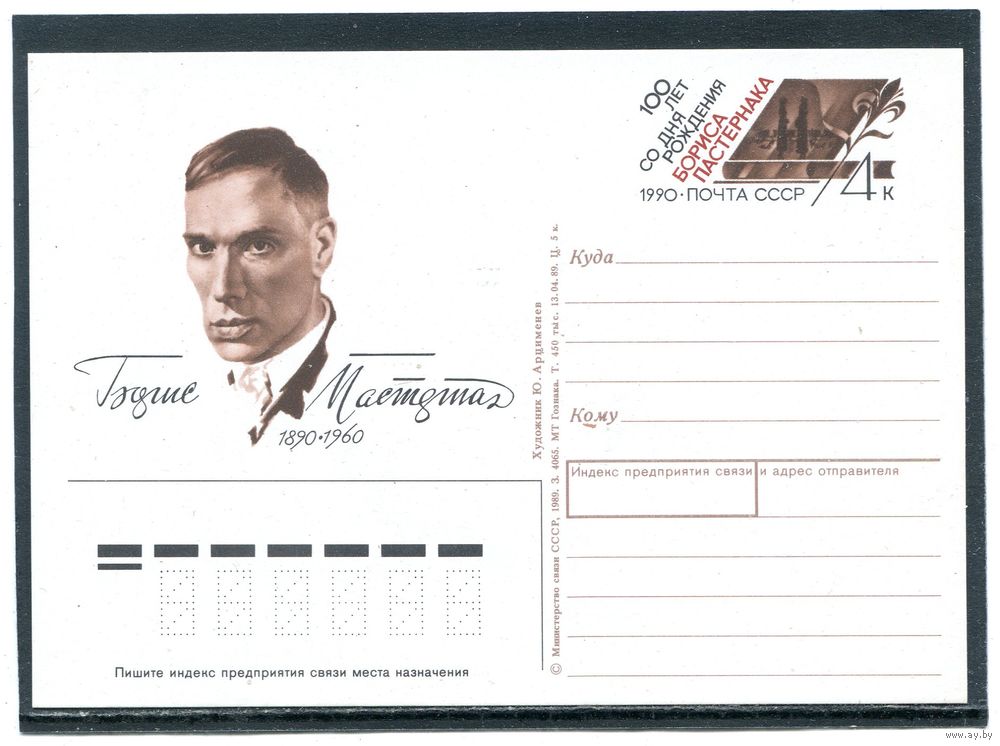 СССР 1990. ПК с ОМ. Борис Пастернак, писатель