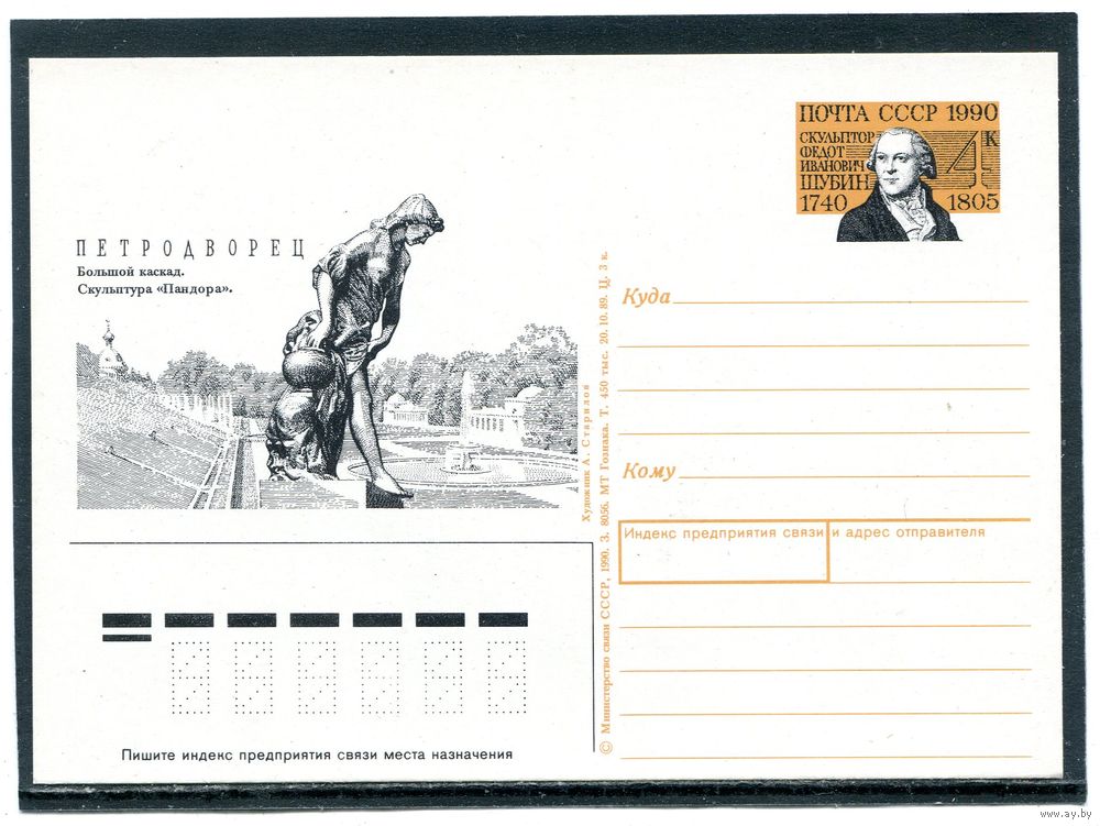 СССР 1990. ПК с ОМ. Ф.И. Шубин, русский скульптор