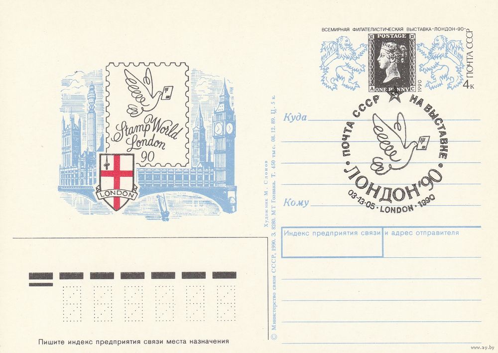СССР 1990 ПК с ОМ СГ Всемирная филателистическая выставка Лондон-90, посвящённая 150-летию первой почтовой марки (к3)