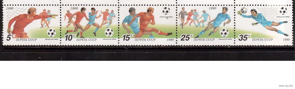 СССР-1990, (Заг.,6144-6148) ** , Спорт, ЧМ по футболу,
