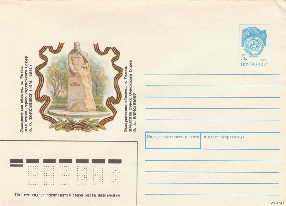 СССР 1991 МХК Рахов Памятник герою Борканюку (к3)