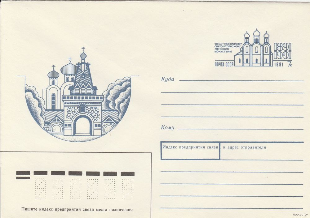 СССР 1991 МХК с ОМ 100 лет Похтинскому Свято-Успенскому монастырю (к3)
