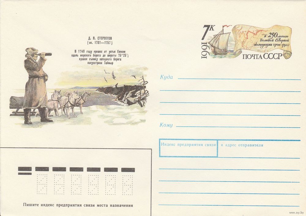 СССР 1991 МХК с ОМ 250 лет Великой Северной экспедиции Стерлигов (к3)