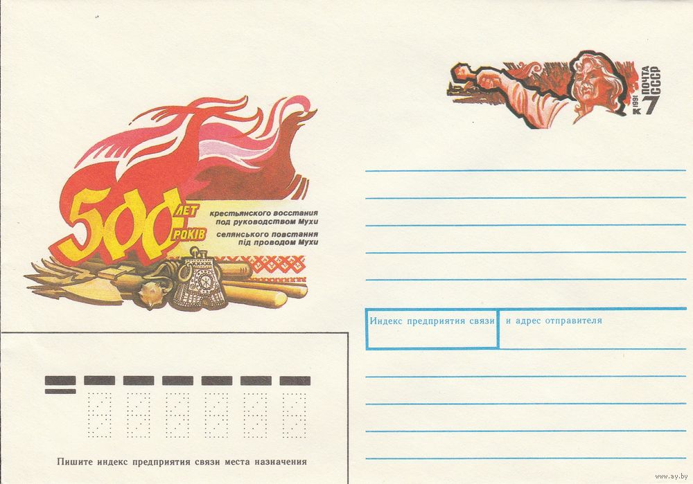 СССР 1991 МХК с ОМ 500-летие крестьянского восстания под руководством Мухи (к3)