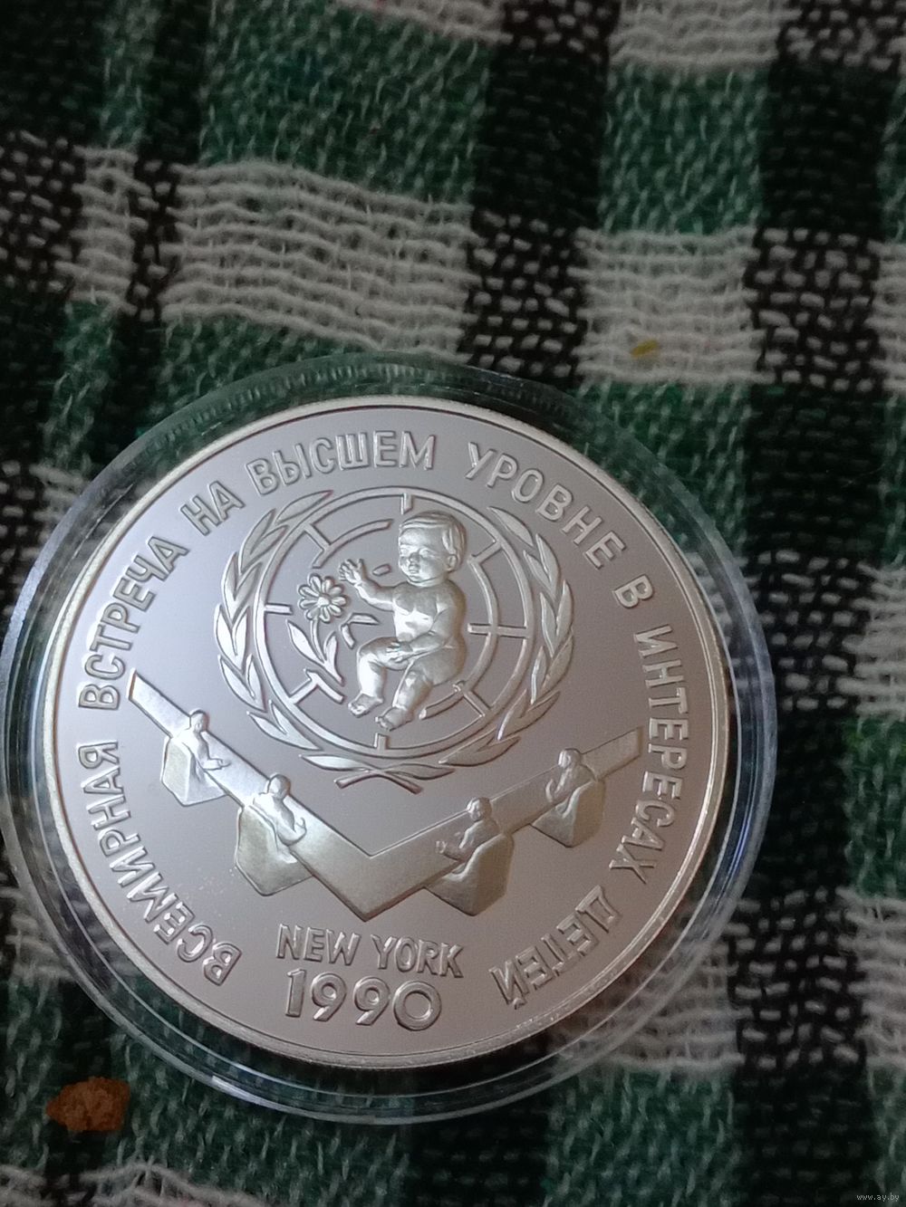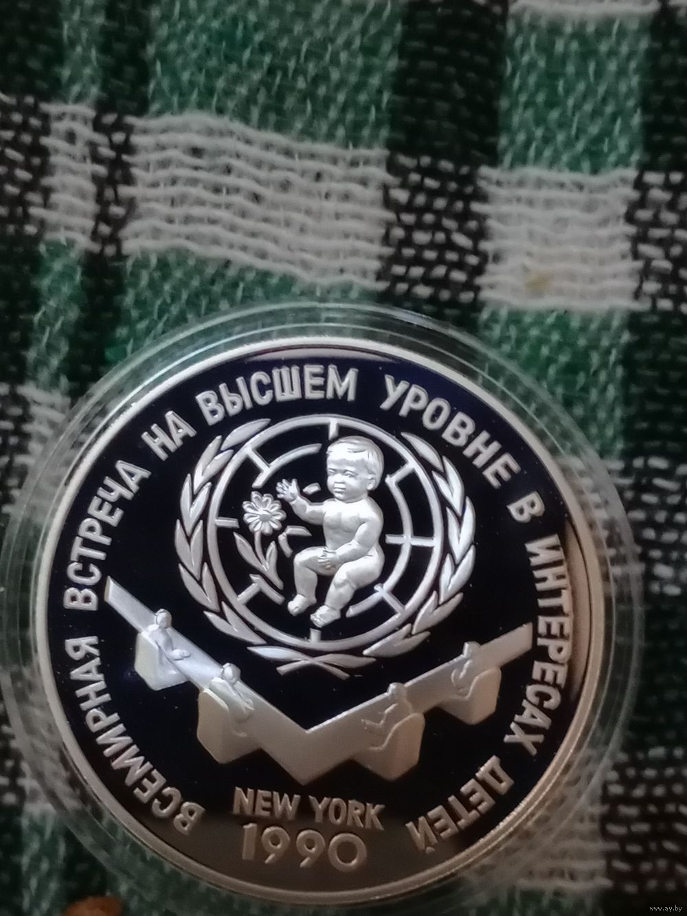 СССР 3 руб серебро 1990 встреча в Нью-Йорке на высшем уровне