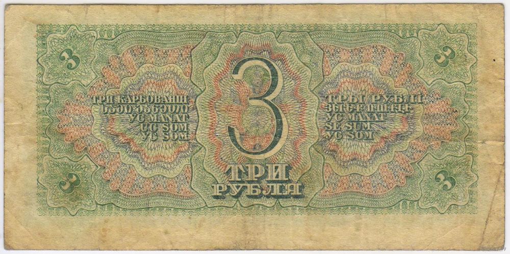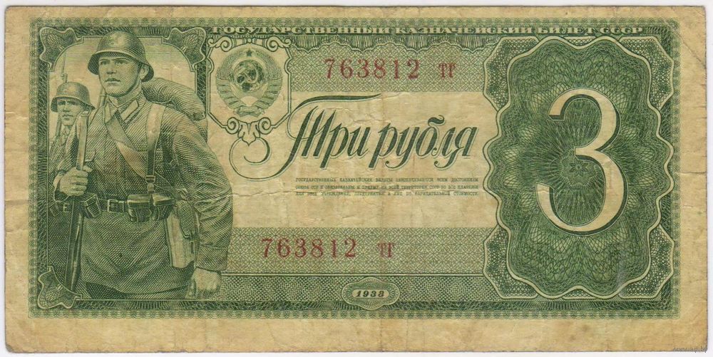 СССР 3 рубля 1938 г. серия 673812 тг