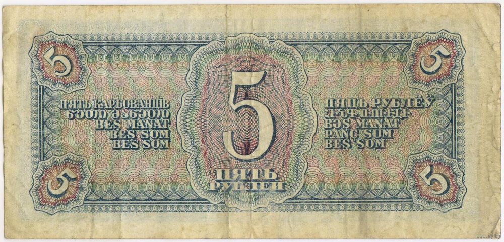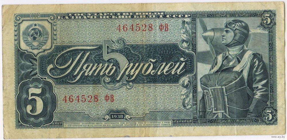 СССР 5 рублей 1938 г. серия 805884 ОК