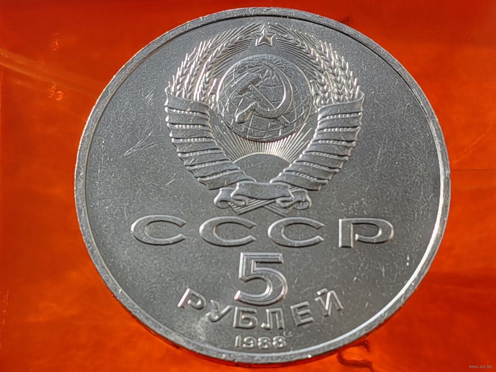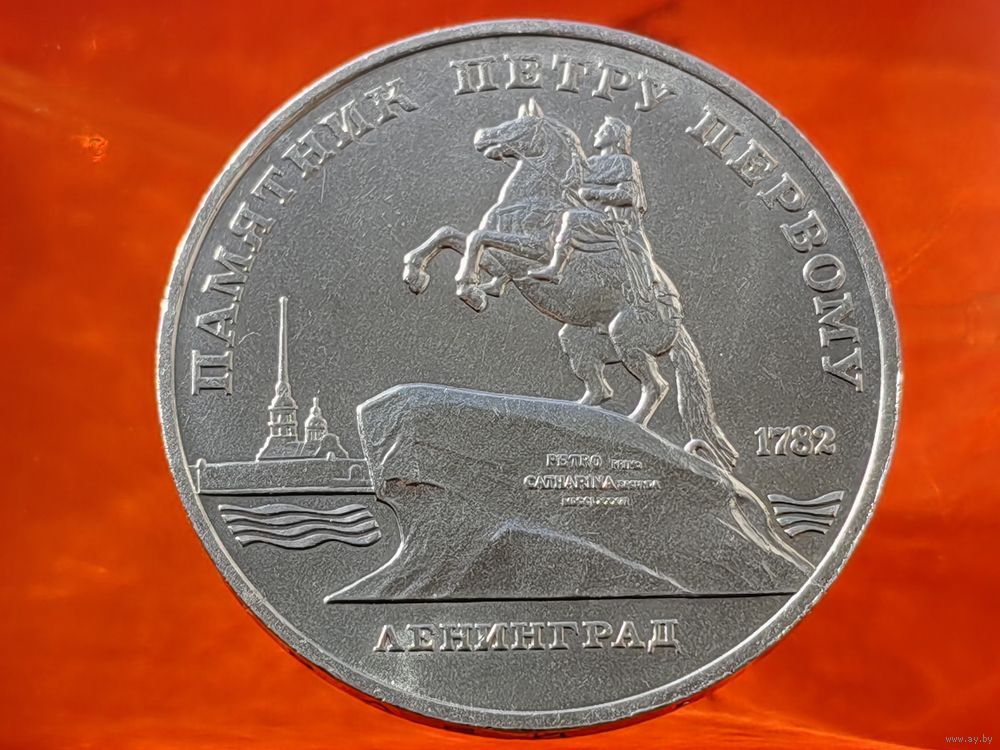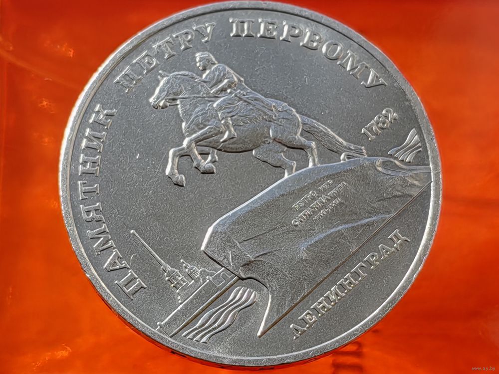 СССР. 5 рублей 1988 - памятник Петру Первому в Ленинграде. Брак, раскол штемпеля реверса. (3). Торг.