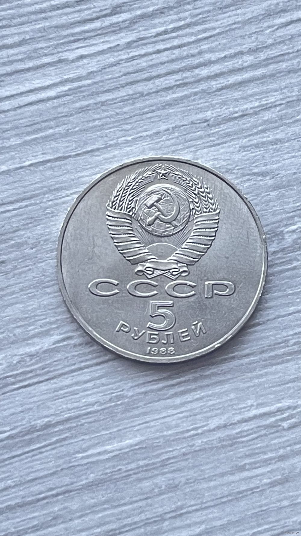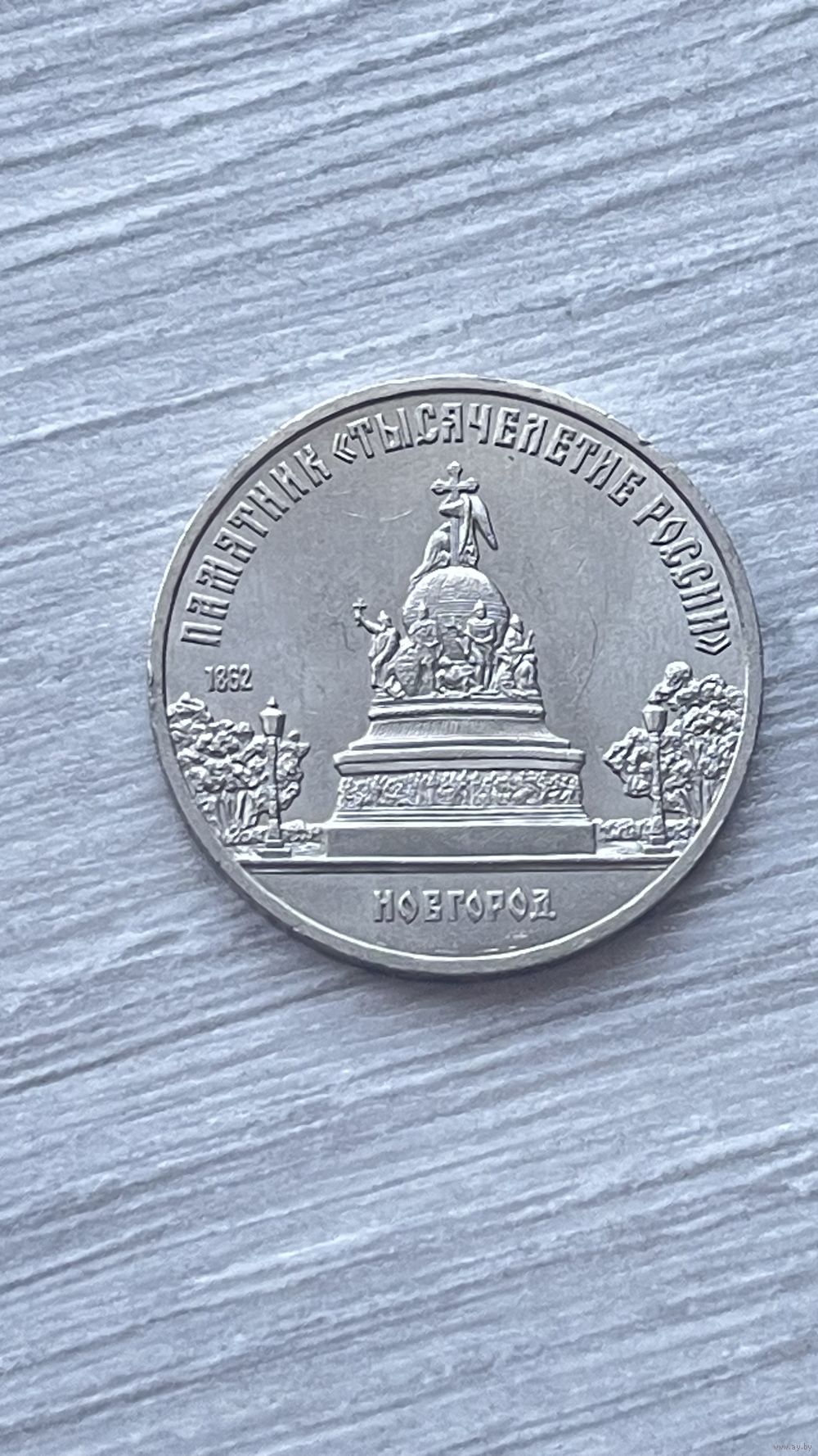 СССР. 5 рублей 1988 - памятник "Тысячелетие России" в Новгороде.