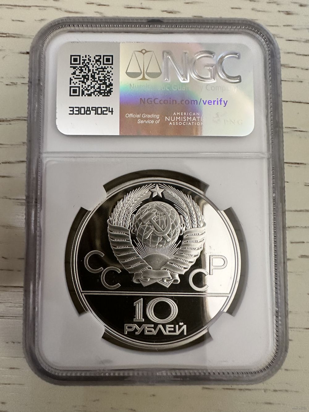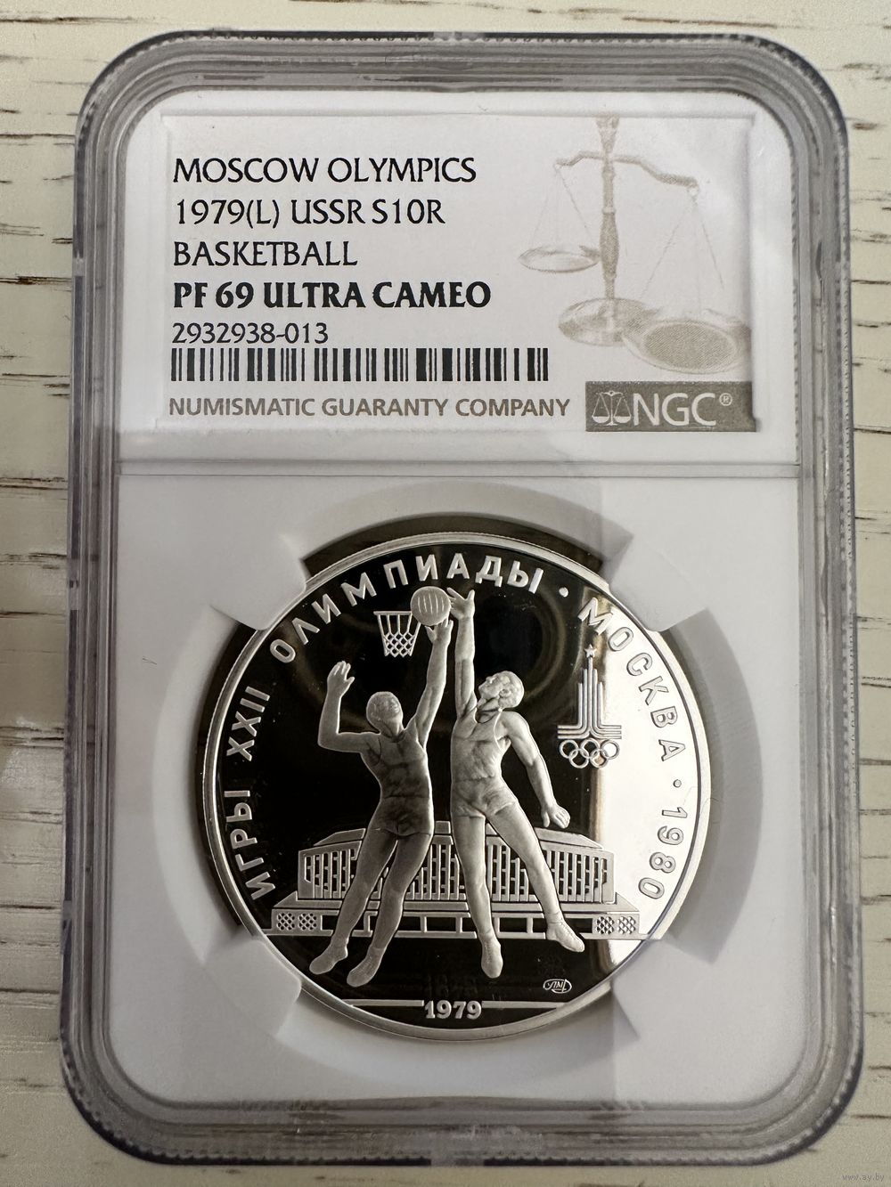 СССР. Баскетбол. 10 рублей 1979 год ЛМД "Олимпиада 80". Пруф. Слаб NGC PF 69 Ultra Cameo