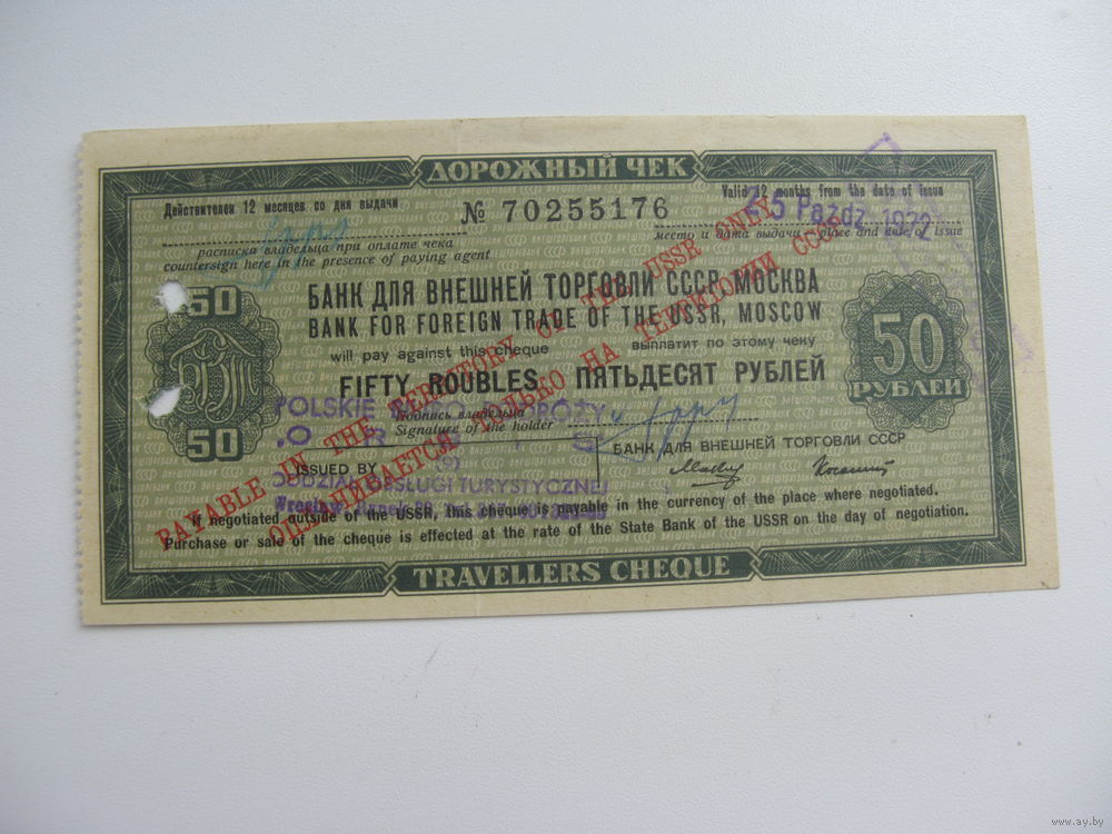 СССР Дорожный чек ВТБ 50 рублей..