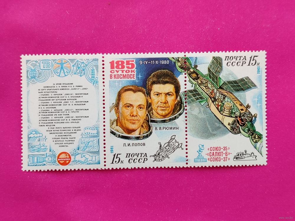 СССР. Исследования на орбитальном космическом комплексе "Союз - 35"-"Салют - 6"-"Союз - 37". ( 3 марки ) 1981 года. 7-5.
