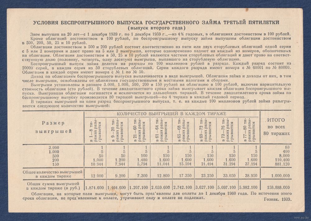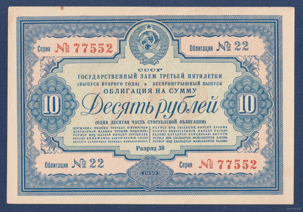СССР, облигация 10 рублей 1939 г, Государственный заем третьей пятилетки (выпуск 2-го года), XF