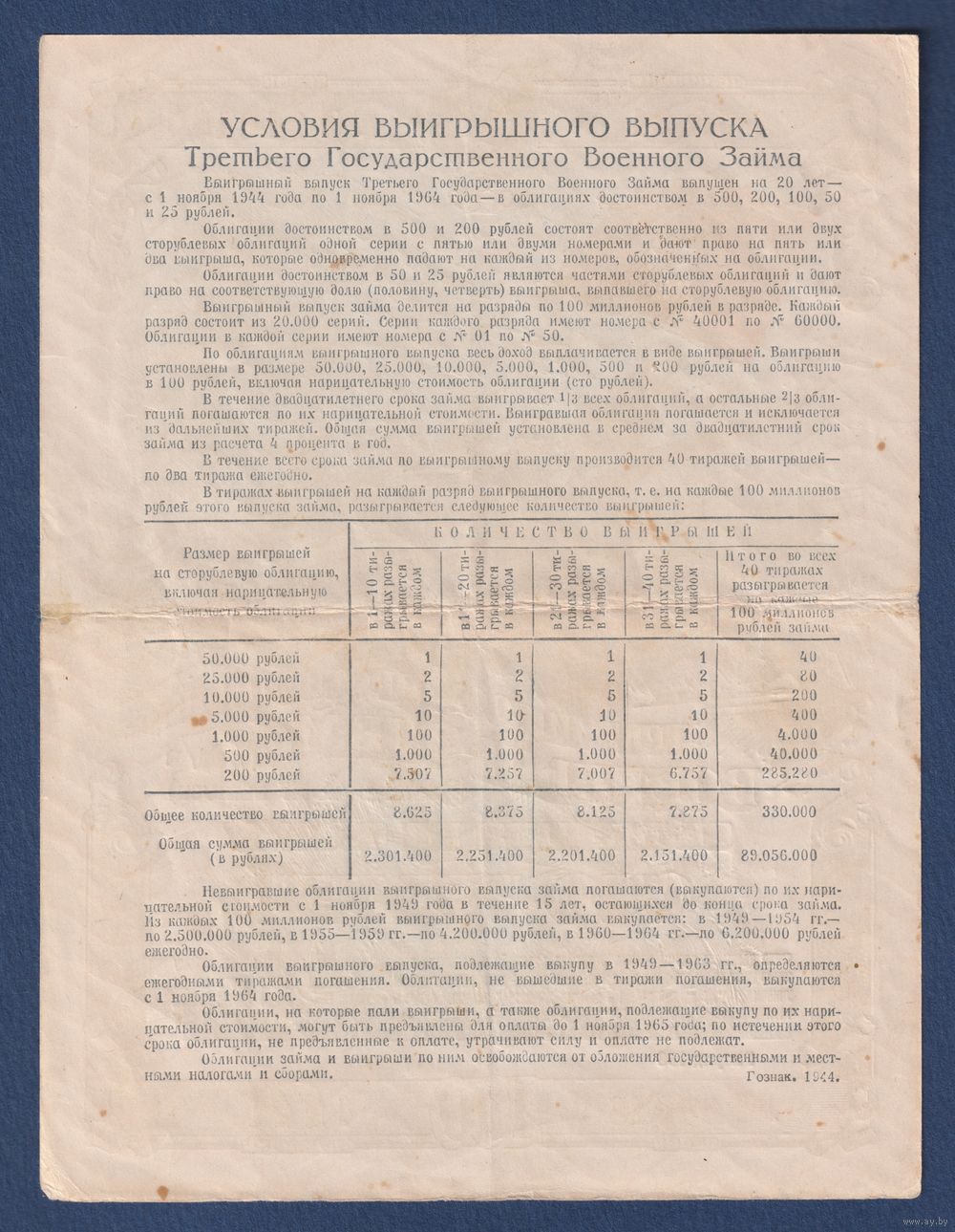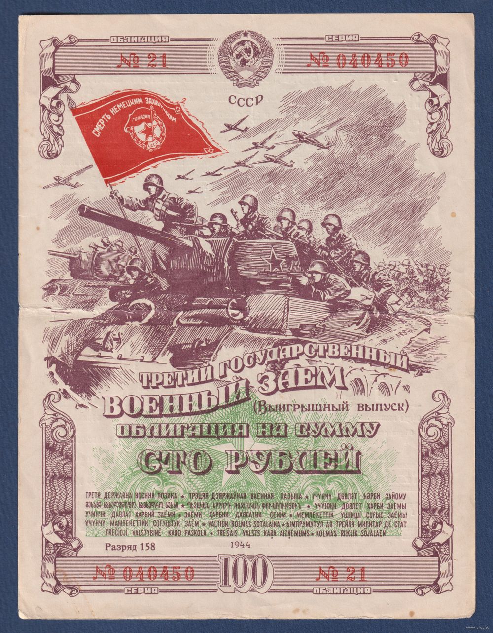 СССР, облигация 100 рублей 1944 г, Третий государственный военный заем, XF-