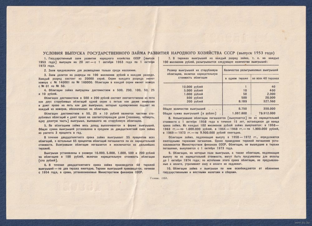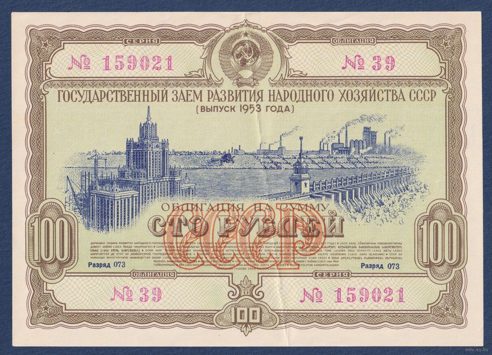 СССР, облигация 100 рублей 1953 г, Государственный заем развития народного хозяйства, XF