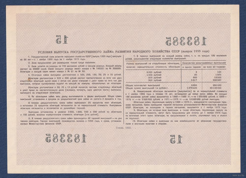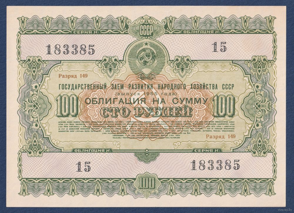 СССР, облигация 100 рублей 1955 г, Государственный заем развития народного хозяйства, aUNC-