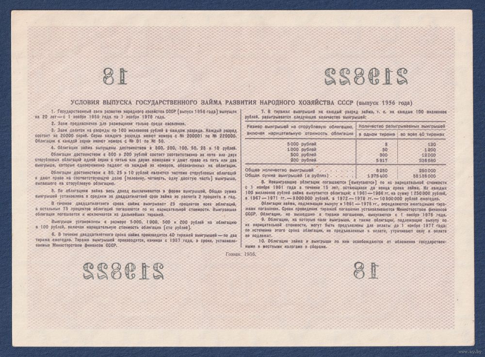 СССР, облигация 100 рублей 1956 г, Государственный заем развития народного хозяйства, aUNC