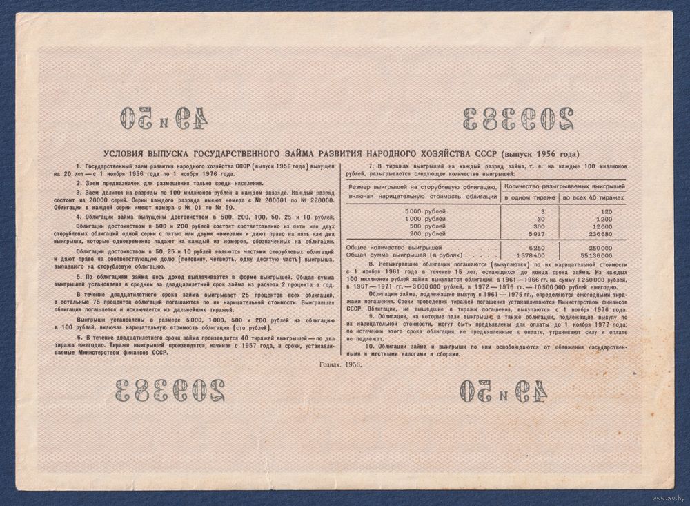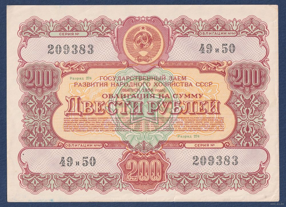 СССР, облигация 200 рублей 1956 г, Государственный заем развития народного хозяйства, VF