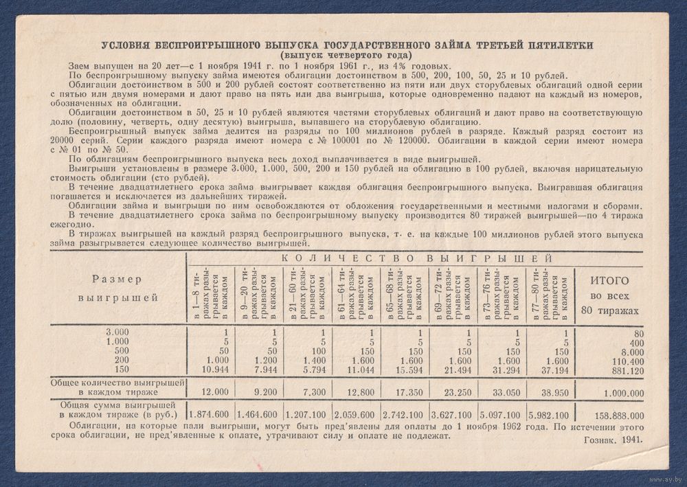 СССР, облигация 25 рублей 1941 г, Государственный заем третьей пятилетки (выпуск 4-го года), XF