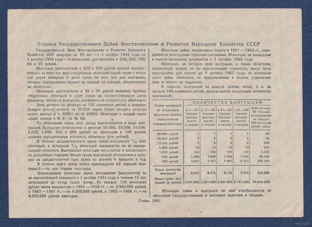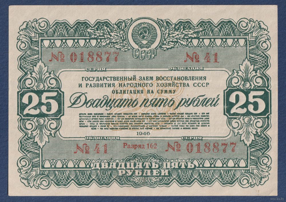 СССР, облигация 25 рублей 1946 г, Государственный заем восстановления и развития народного хозяйства, XF