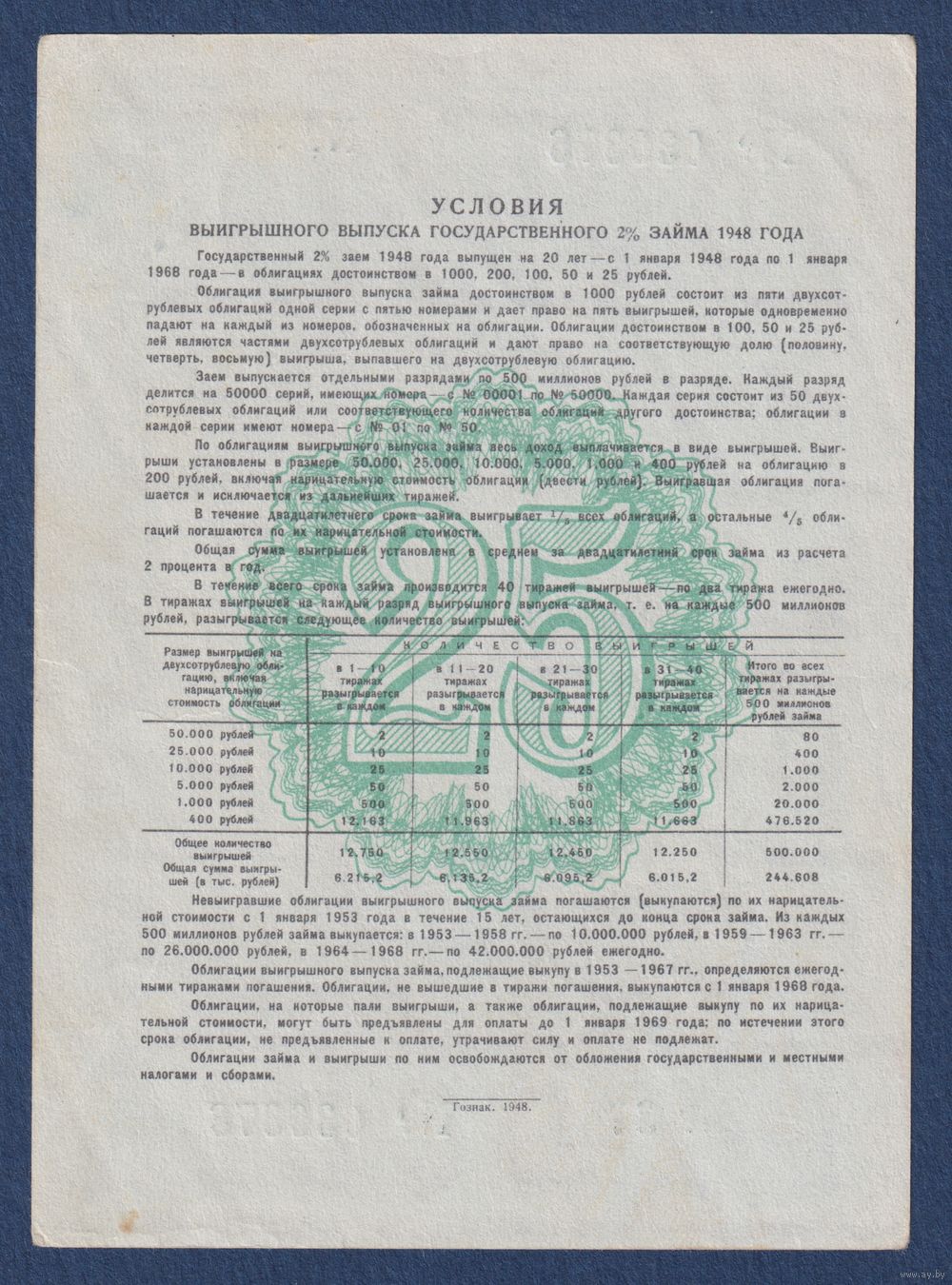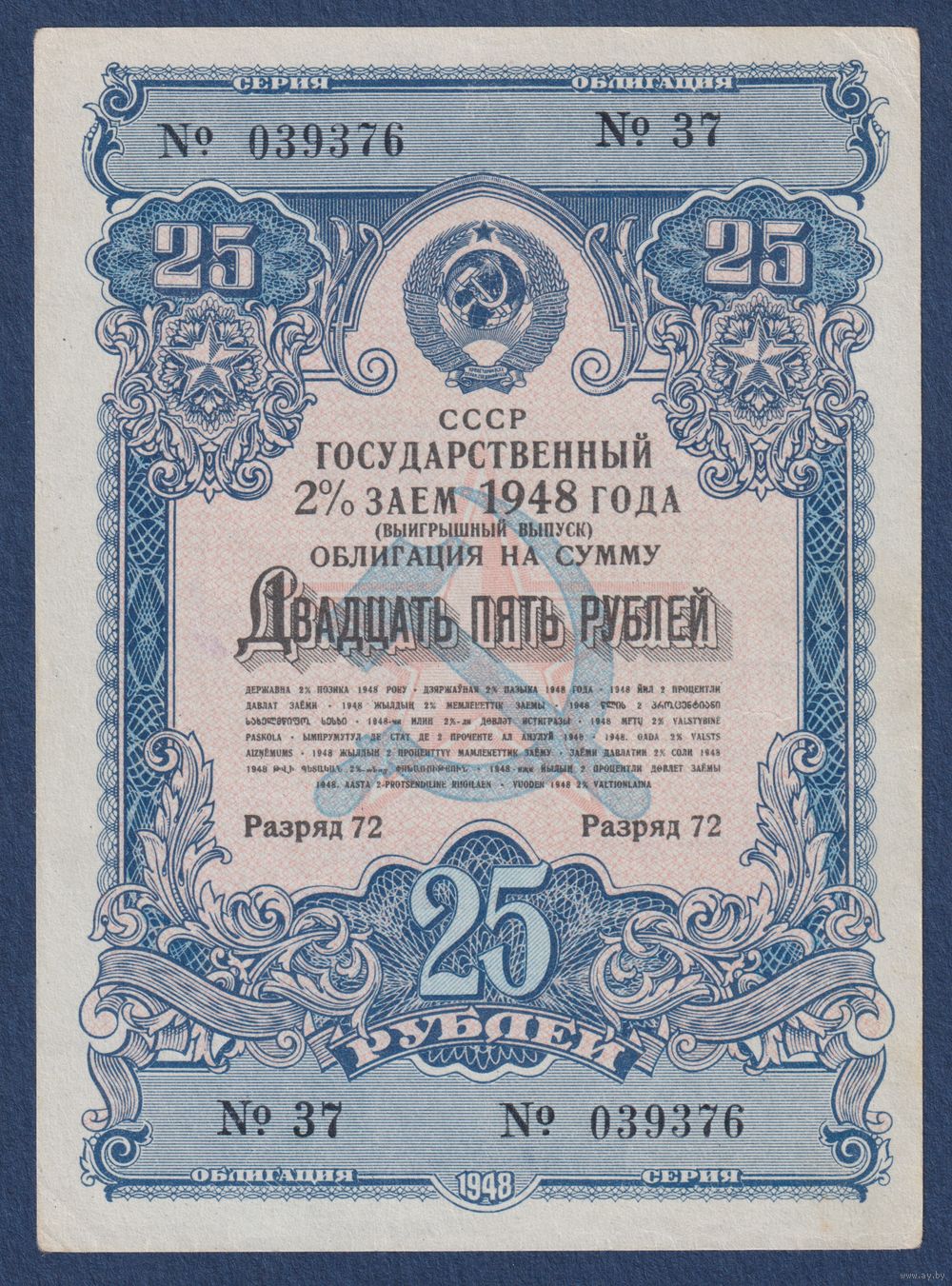 СССР, облигация 25 рублей 1948 г, Второй государственный заем восстановления и развития народного хозяйства, aUNC