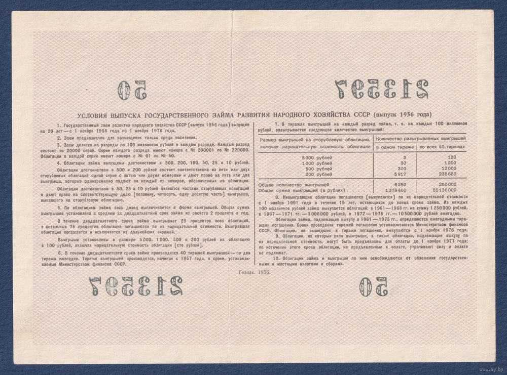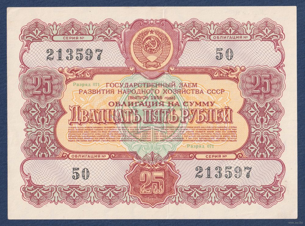 СССР, облигация 25 рублей 1956 г, Государственный заем развития народного хозяйства, XF