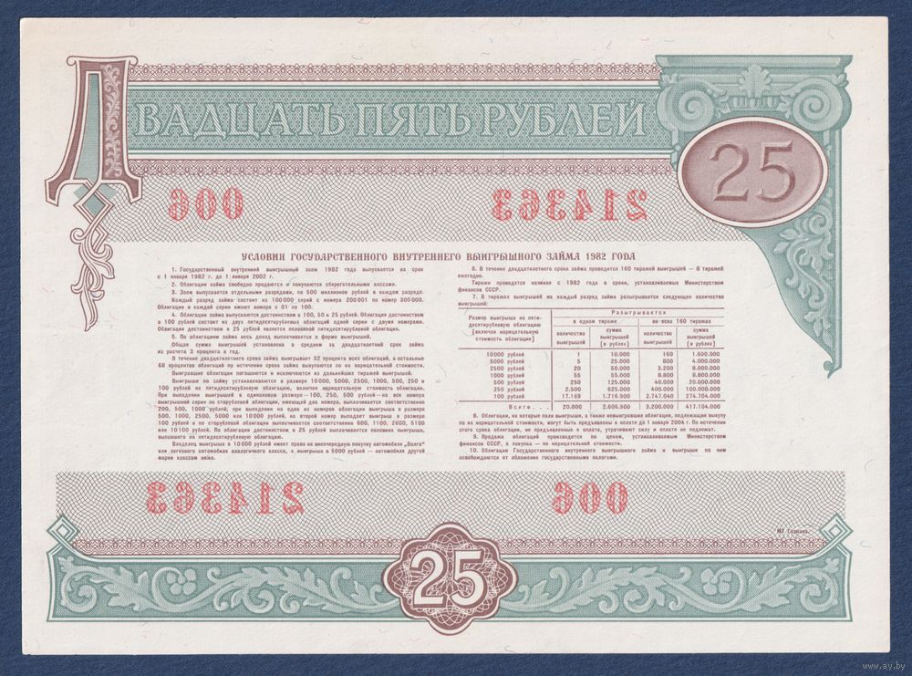 СССР, облигация 25 рублей 1982 (1986) г, Государственный выигрышный внутренний заем, UNC-