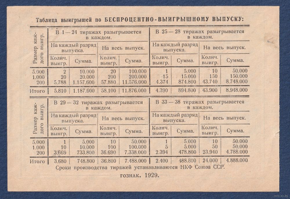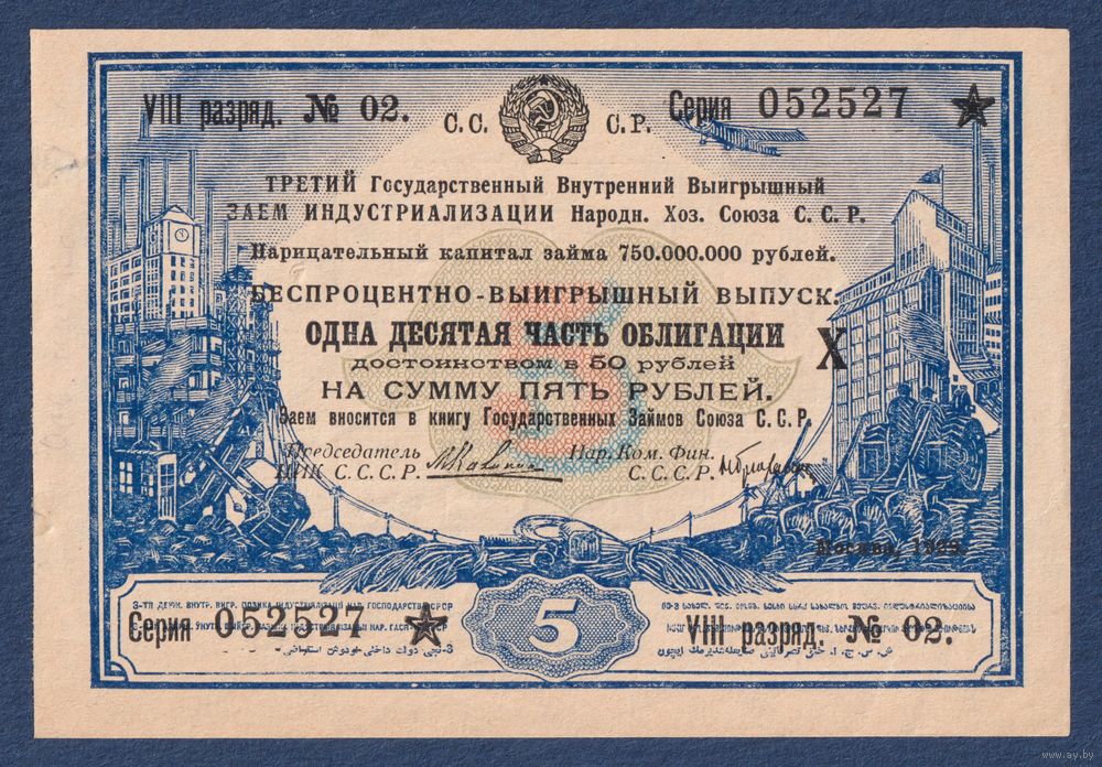 СССР, облигация 5 рублей 1929 г, 3-ий Государственный внутренний выигрышный заем Индустриализации Народного хозяйства, XF