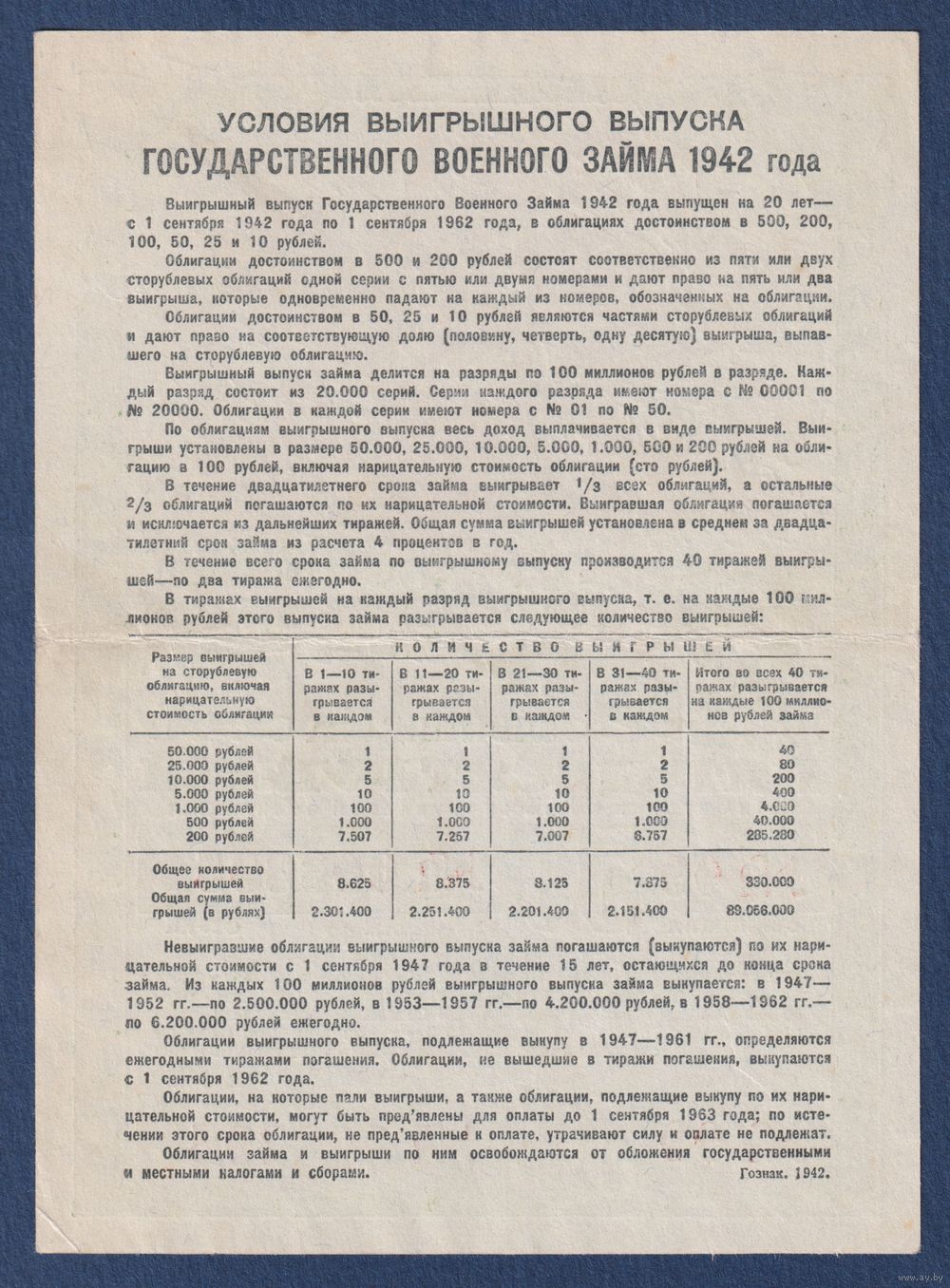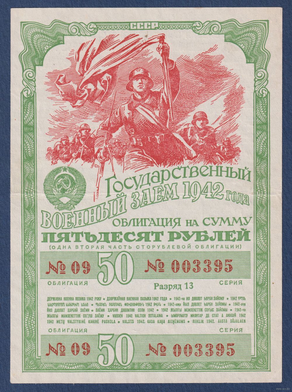 СССР, облигация 50 рублей 1942 г, Государственный военный заем, XF