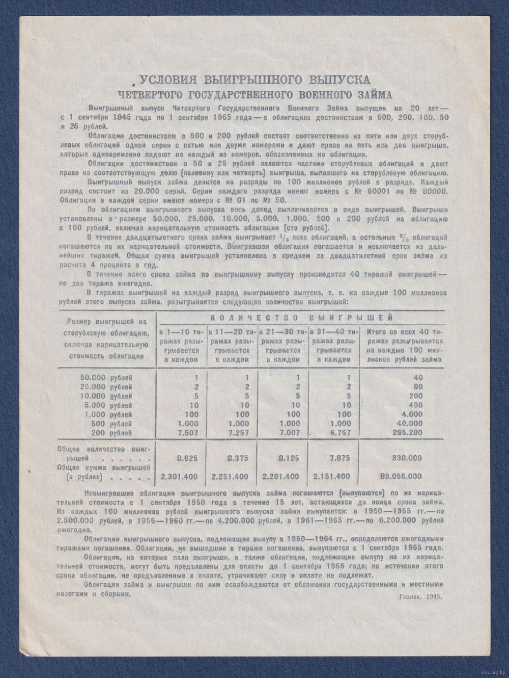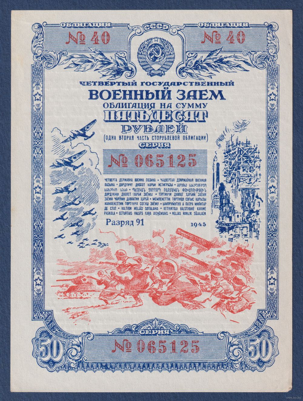 СССР, облигация 50 рублей 1945 г, Четвертый государственный военный заем, aUNC