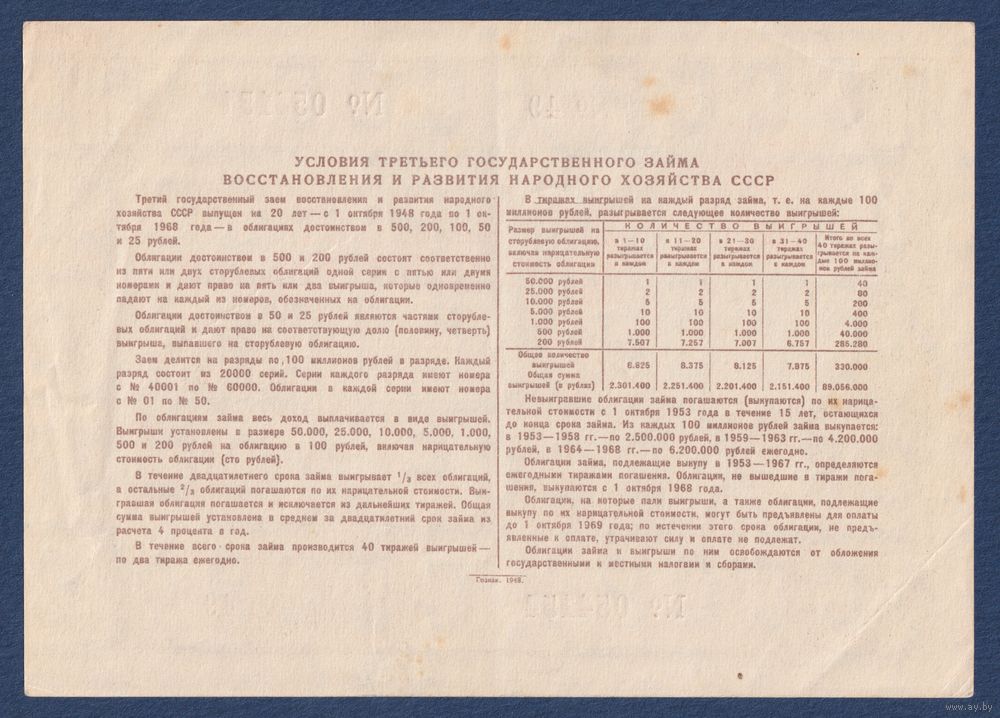СССР, облигация 50 рублей 1948 г, Третий государственный заем восстановления и развития народного хозяйства, XF