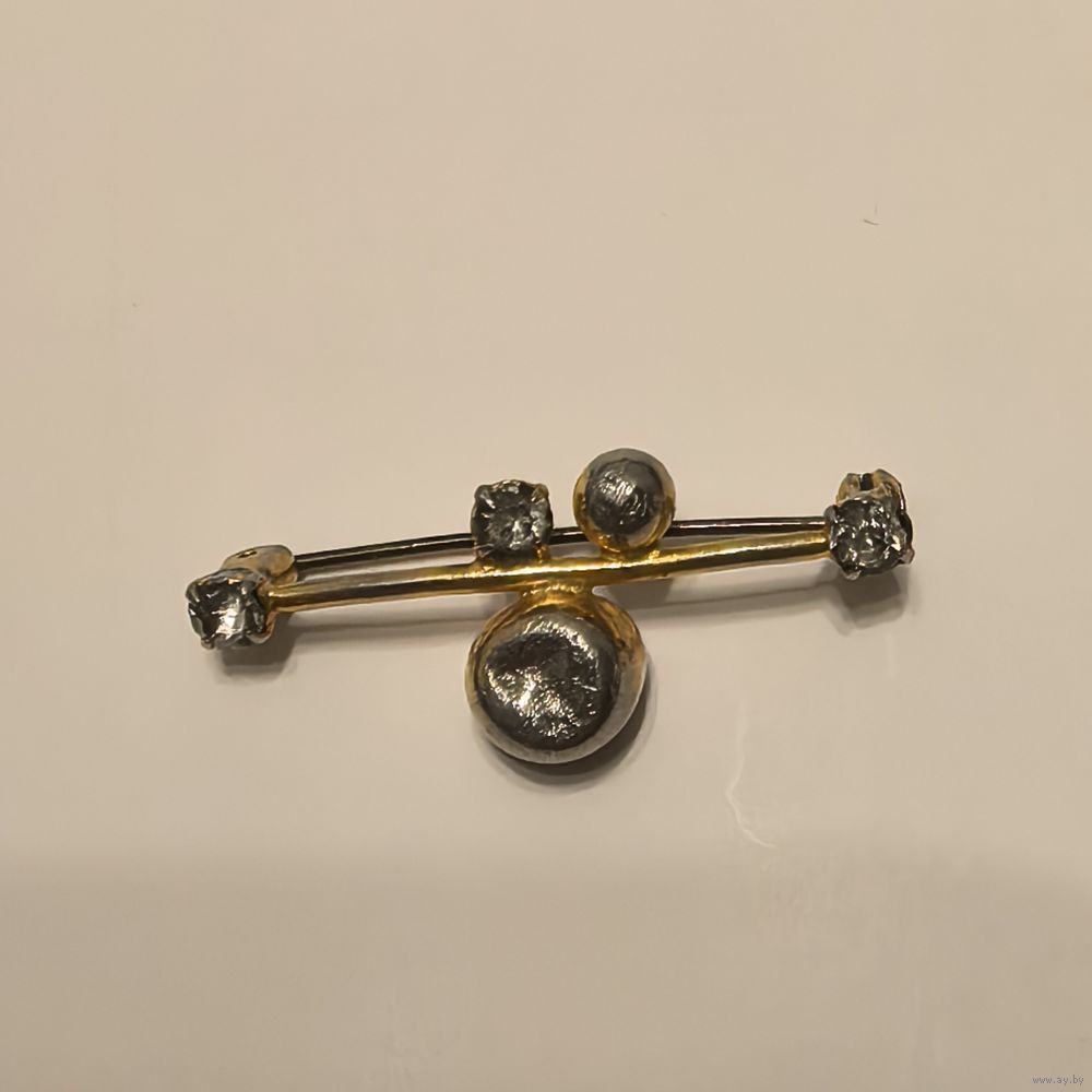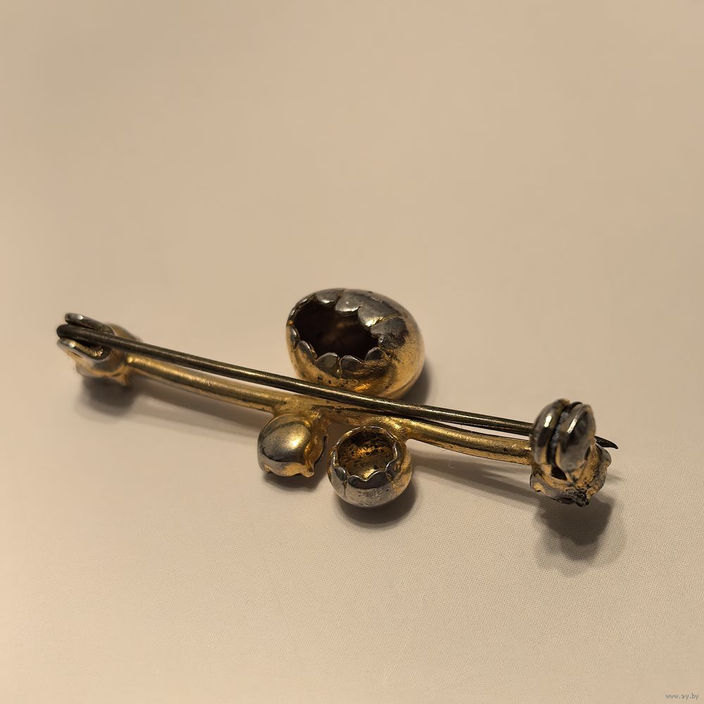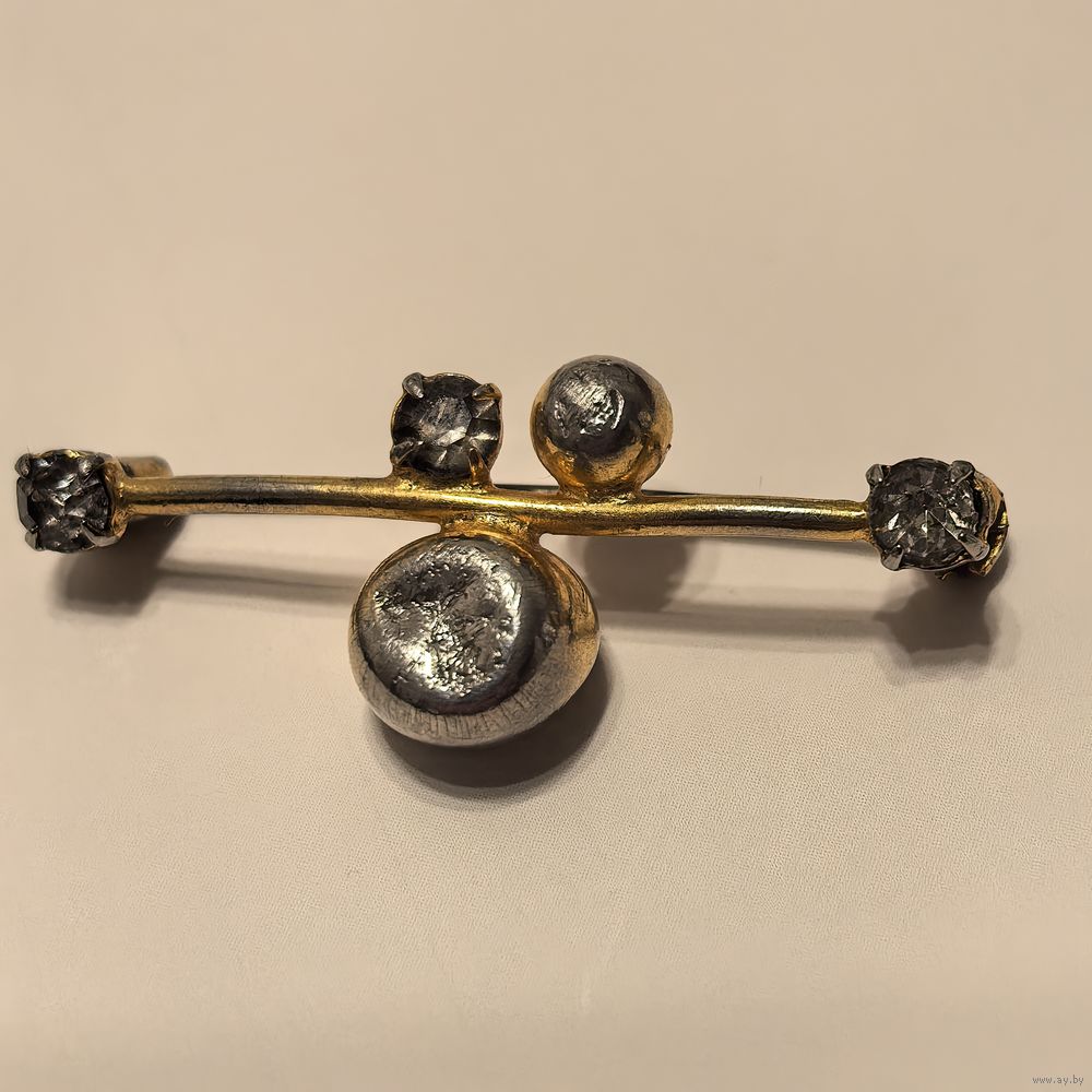 Необычная брошь из СССР. С позолотой и родными кристаллами и иглой. Требуется ремонт.