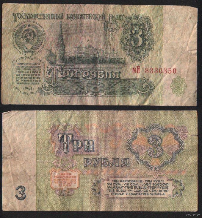 СССР P-223a.3 3 рубля 1961 строчная-прописная аА-эЯ ' мИ 8330850 ТОРГ/ВАША ЦЕНА