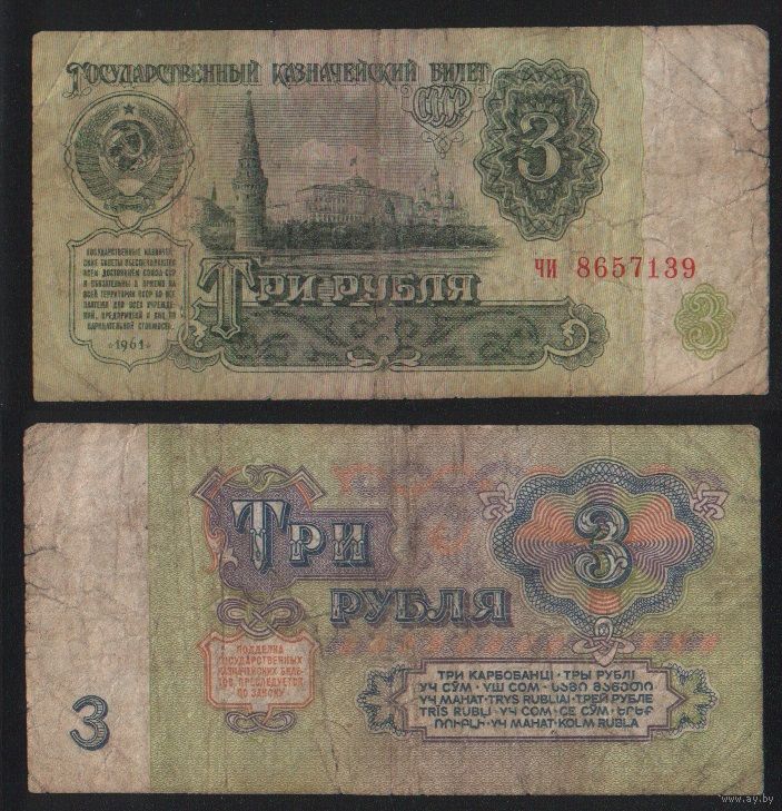 СССР P-223a.4 3 рубля 1961 строчная-строчная аа-эя ' чи 8657139 ТОРГ/ВАША ЦЕНА