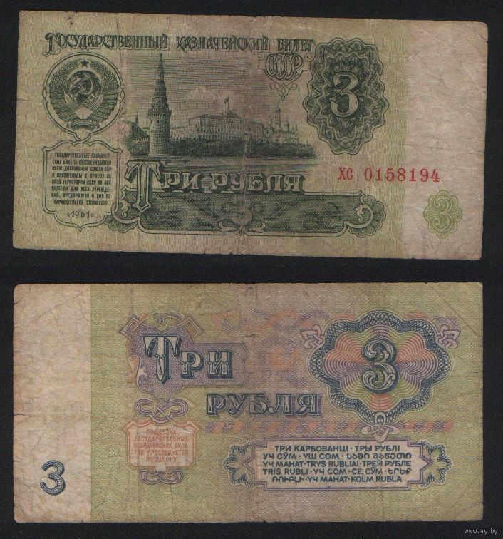 СССР P-223a.4 3 рубля 1961 строчная-строчная аа-эя ' хс 0158194 ТОРГ/ВАША ЦЕНА