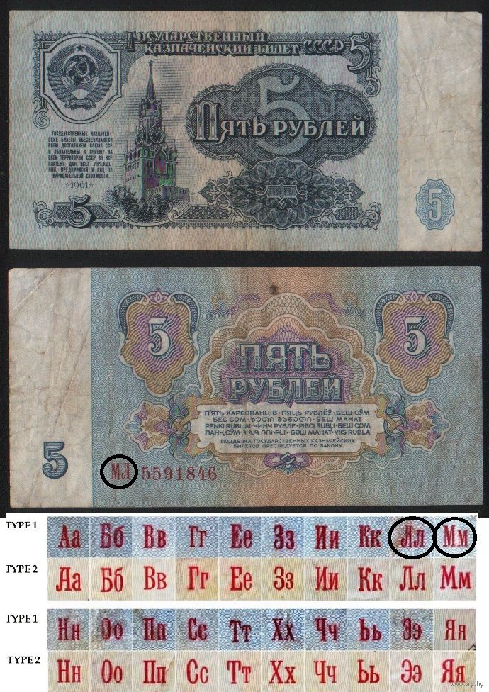 СССР P-224a.1 5 рублей 1961 прописная-прописная АА-ЭЯ шрифт тип 1 ' МЛ 5591846 ТОРГ/ВАША ЦЕНА