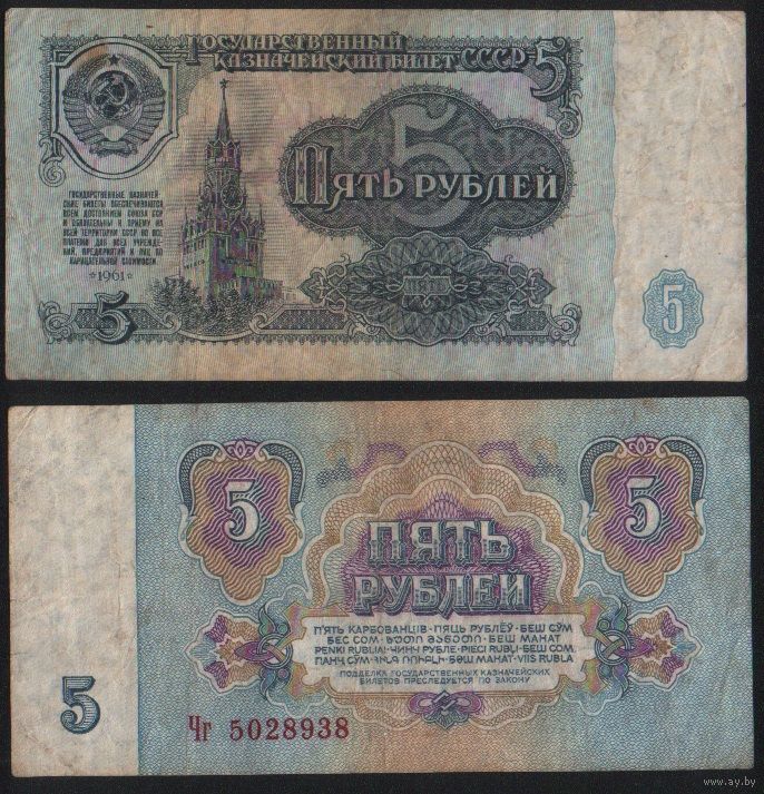 СССР P-224a.2 5 рублей 1961 прописная-строчная Аа-Эя ' Чг 5028938 ТОРГ/ВАША ЦЕНА