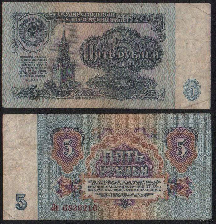 СССР P-224a.2 5 рублей 1961 прописная-строчная Аа-Эя ' Ле 6836210 ТОРГ/ВАША ЦЕНА