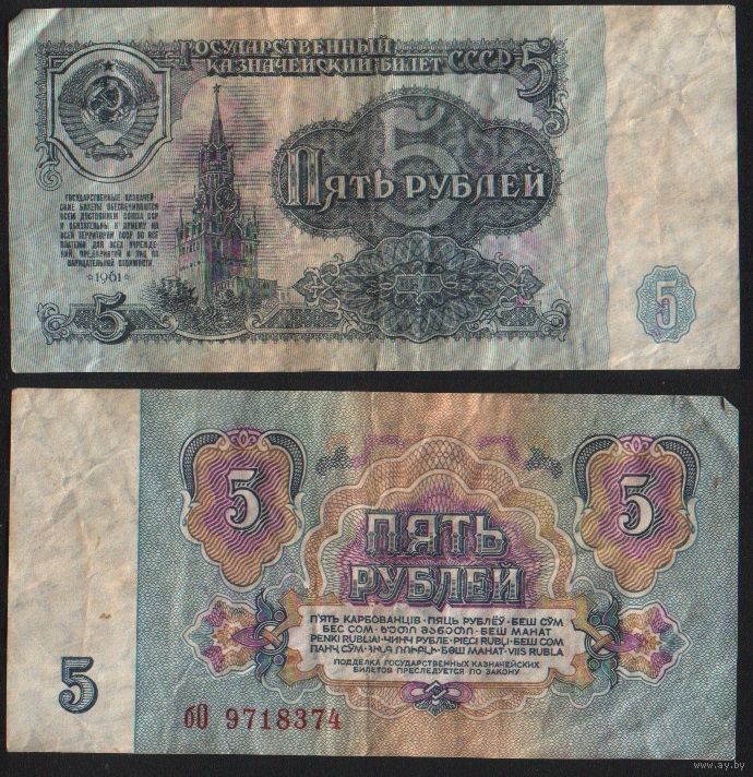 СССР P-224a.3 5 рублей 1961 строчная-прописная аА-эЯ ' бО 9718374 ТОРГ/ВАША ЦЕНА