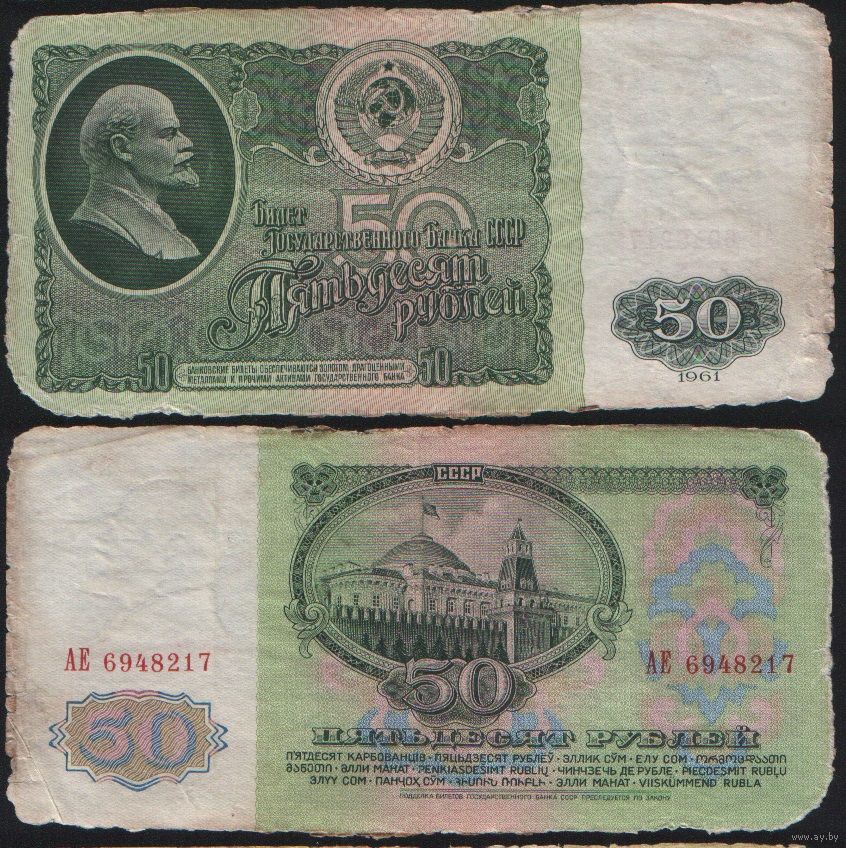 СССР P-235a.1 50 рублей 1961 Префикс АА-АЯ Желтовато-серая бумага ' АЕ 6948217 ТОРГ/ВАША ЦЕНА