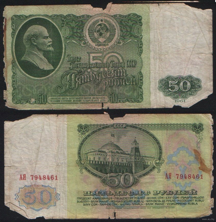 СССР P-235a.1 50 рублей 1961 Префикс АА-АЯ Желтовато-серая бумага ' АЯ 7948461 ТОРГ/ВАША ЦЕНА
