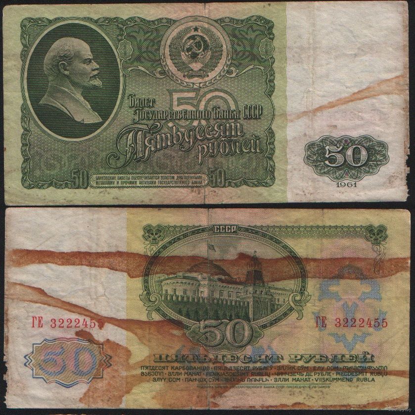 СССР P-235a.2 50 рублей 1961 Префикс БА-ЗХ ' ГЕ 3222455 ТОРГ/ВАША ЦЕНА