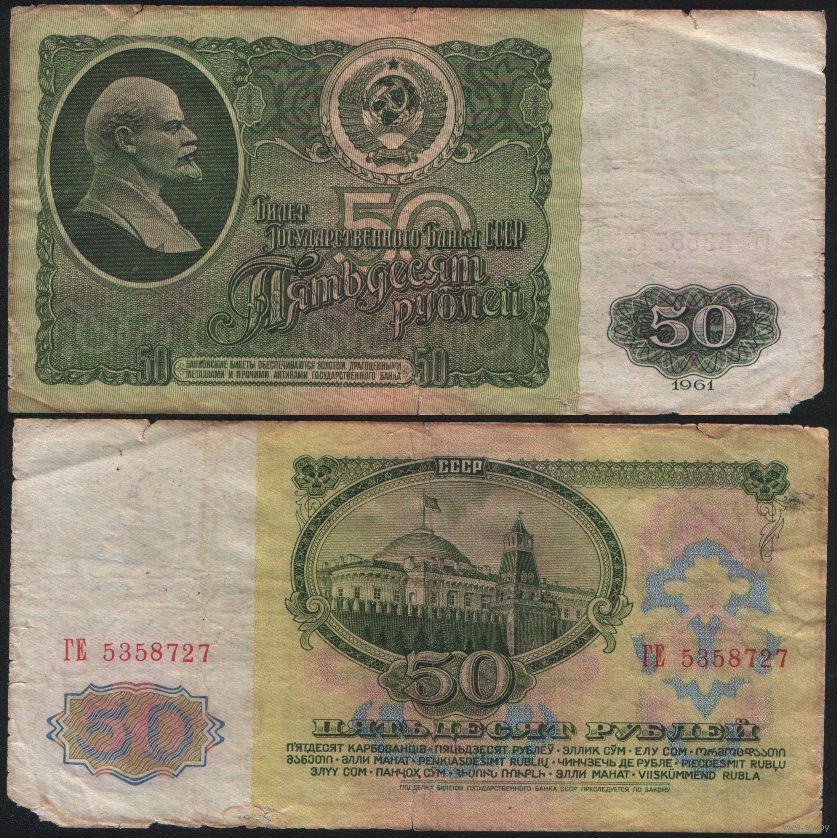 СССР P-235a.2 50 рублей 1961 Префикс БА-ЗХ ' ГЕ 5358727 ТОРГ/ВАША ЦЕНА