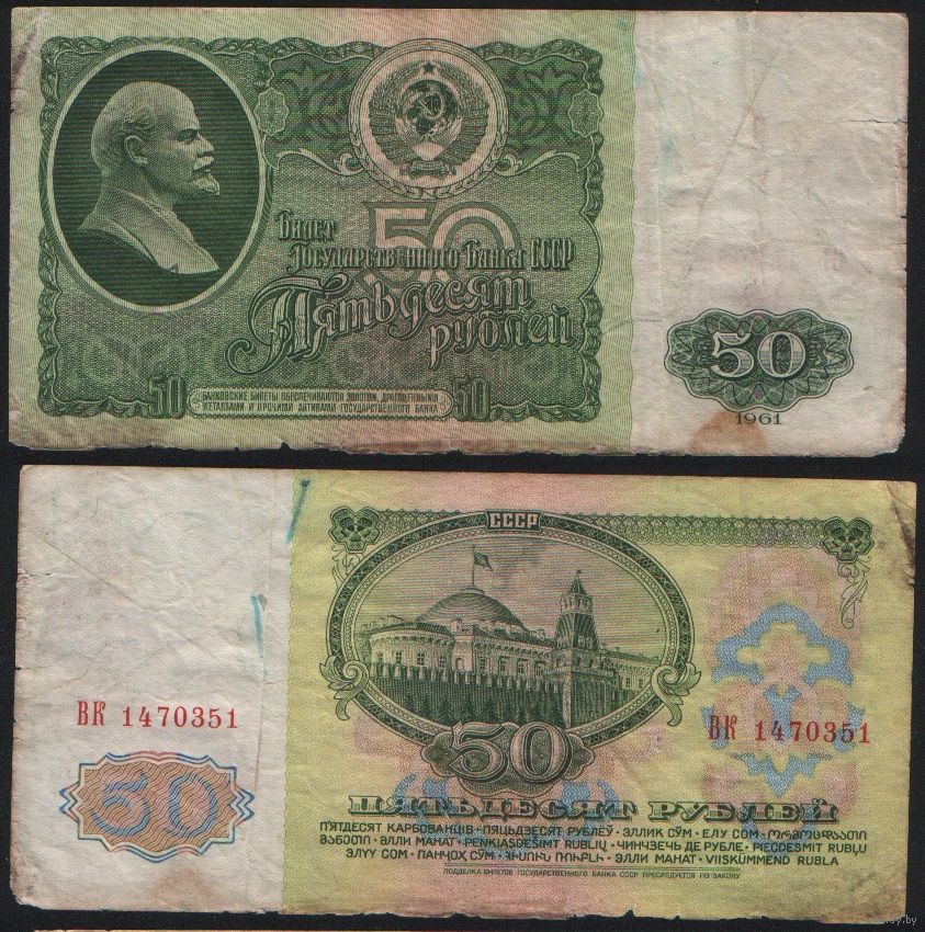 СССР P-235a.2 50 рублей 1961 Префикс БА-ЗХ ' ВК 1470351 ТОРГ/ВАША ЦЕНА