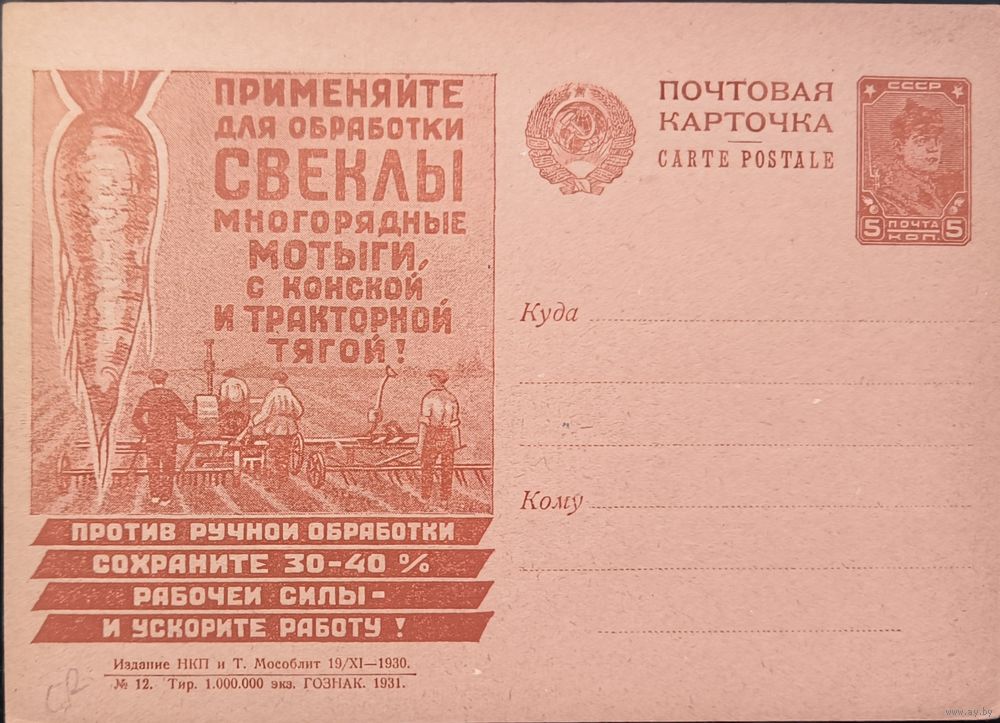СССР. Почтовые карточки. Рекламно-агитационный выпуск. 5к. № 97 (Загорский).